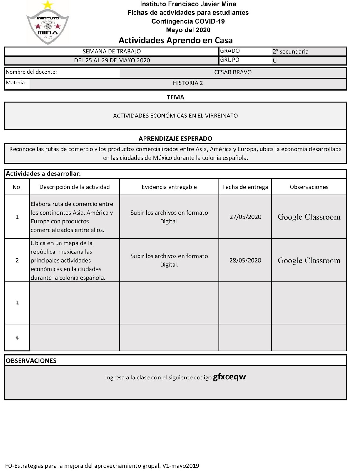 Instituto Francisco Javier Mina CONTINGENCIA 2020